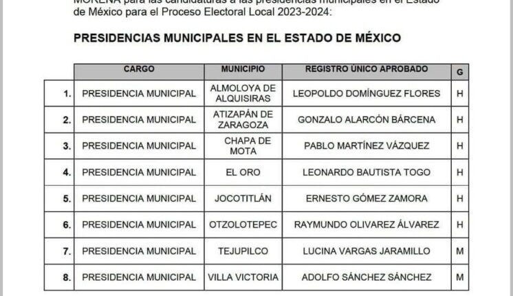 Polémica al interior del partido MORENA en el Estado de México por otra lista de ocho nombres como posibles precandidatos a igual número de alcaldías , anteriormente otro listado de 42 prospectas y prospectos habría sido avalada por el CEN que encabeza Mario Delgado .
