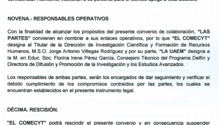 Como lo muestra uno de los convenios firmados por Elias Micha Zaga en su cláusula octava que se presenta en la fotografía principal de esta columna.