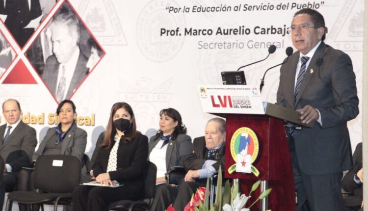 Al encabezar el 56 aniversario del Reconocimiento Jurídico del Sindicato de Maestros al Servicio del Estado de México (SMSEM), Marco Aurelio Carbajal Leyva, Secretario General destacó la importancia de continuar trabajando para heredar a las futuras generaciones de maestros estatales, una organización que continúe fuerte, firme y en unidad.